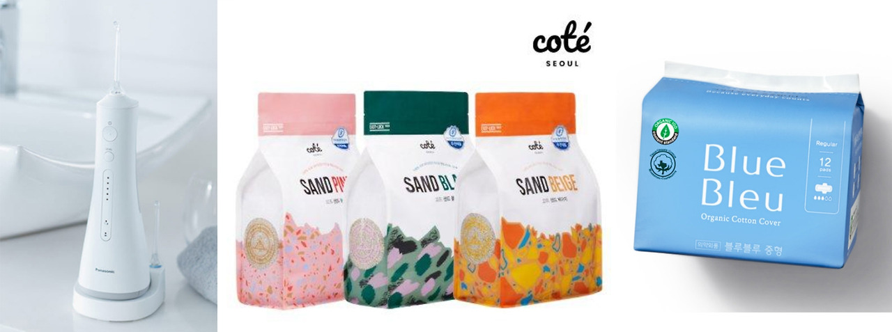 <파나소닉코리아 제트워셔, 꼬뜨 고양이모래, 블루블루 생리대>