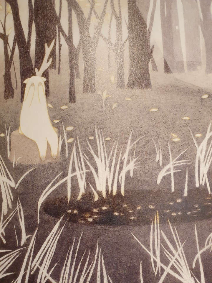 그림에 많은 색을 사용하지 않아 담백하고 깔끔합니다. 나약한 모습인 듯하고 술픔을 가득한 눈망울을 하고 있는 순백의 사슴 그림이 인상적입니다. 옅은 수채화 같은 몽환적인 그림으로 사슴의 마음을 잘 표현한 그림책입니다.