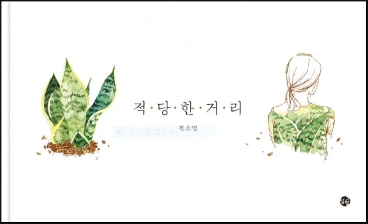 적당한 거리를 두는 것이 잘 안 된다면, 사람을 대할 때 식물을 대하듯 하면 어떨까? 각각의 특성을 알고 그에 맞게 대한다면 잘 성장한다면, 사람들에게도 식물의 성장배경을 알고 다가간다면 서로를 위하는 마음에 다치지 않고 상하지 않게 거리를 두면 좋은 인연으로 만들어갈 수 있지 않을까. 이런 내 마음을 간접적으로 잘 표현한 전소영이 그리고 쓴 『적당한 거리』 그림책이 있다.