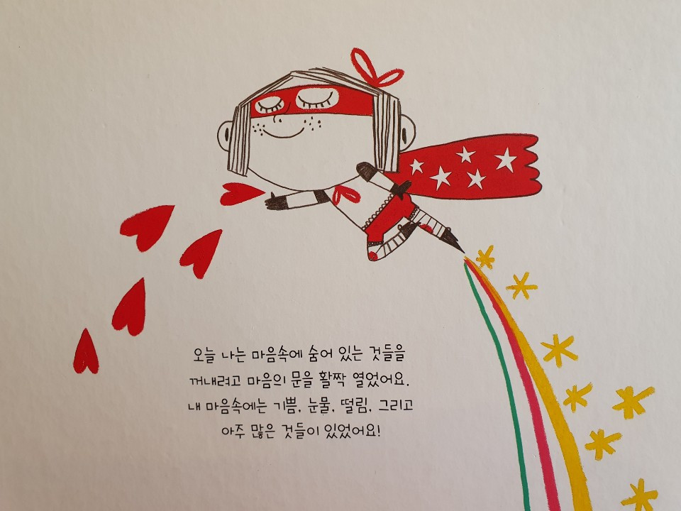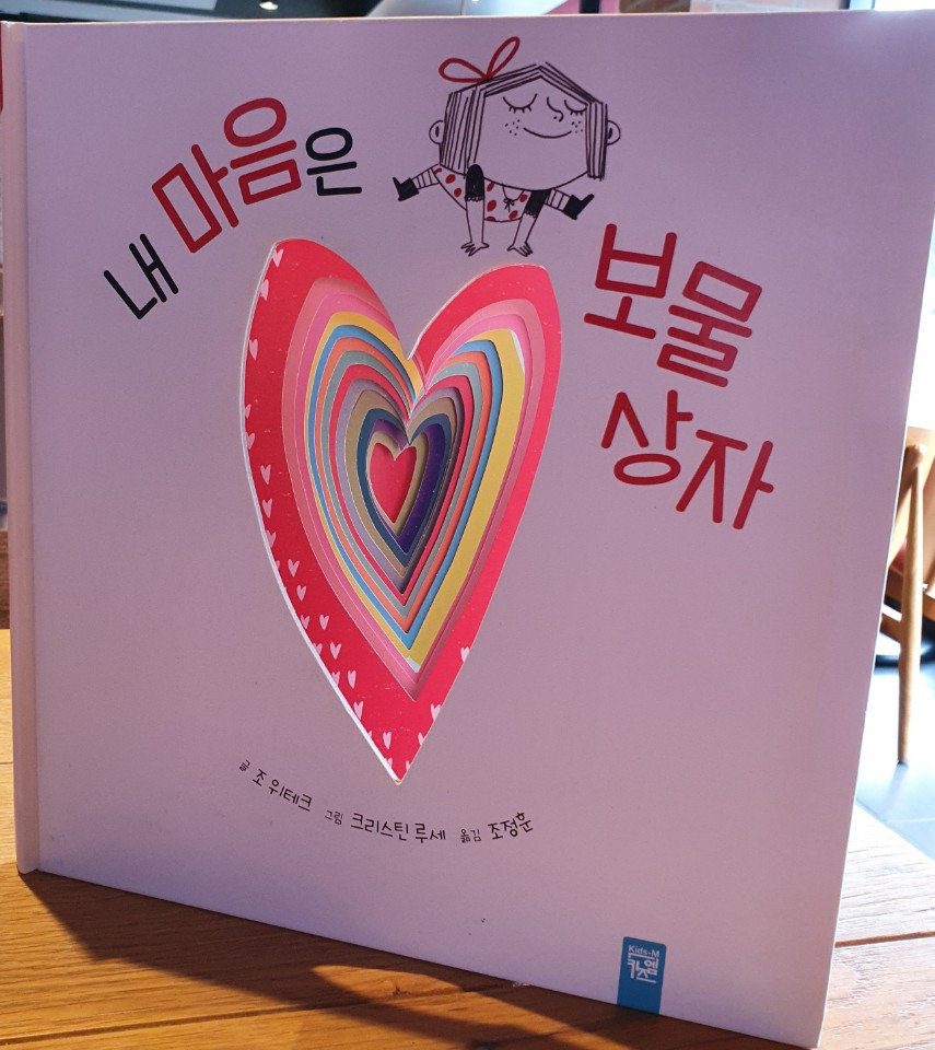 어느 날은 반짝이는 별 같고, 어느 날은 구름이 잔뜩 낀 하늘같고, 어느 날은 요란한 천둥과 번개 같고, 또 어느 날은 잔잔한 호수에 내리는 빗물 같고, 그리고 어느 날은 강렬한 태양과 은근한 달빛 같은 감정들이다. 이처럼 숨은 감정 표현이 당연하고 자연스럽다는 걸 보여주는 그림책이 있다. 조 위테크가 글을 쓰고, 크리스틴 루세가 그린 ⌜내 마음은 보물 상자⌟는 솔직한 감정을 이해하기 쉽게 표현했다. 귀엽고 발칙하기도 한 감정 표현을 은유적으로 잘 드러냈다. 이 그림책이 내 마음에 들어온 까닭은 그림책에서 마음을 하트로 표현했는데 14가지 색으로, 그리고 하트 마음에 입체적으로 구멍을 뚫었다.