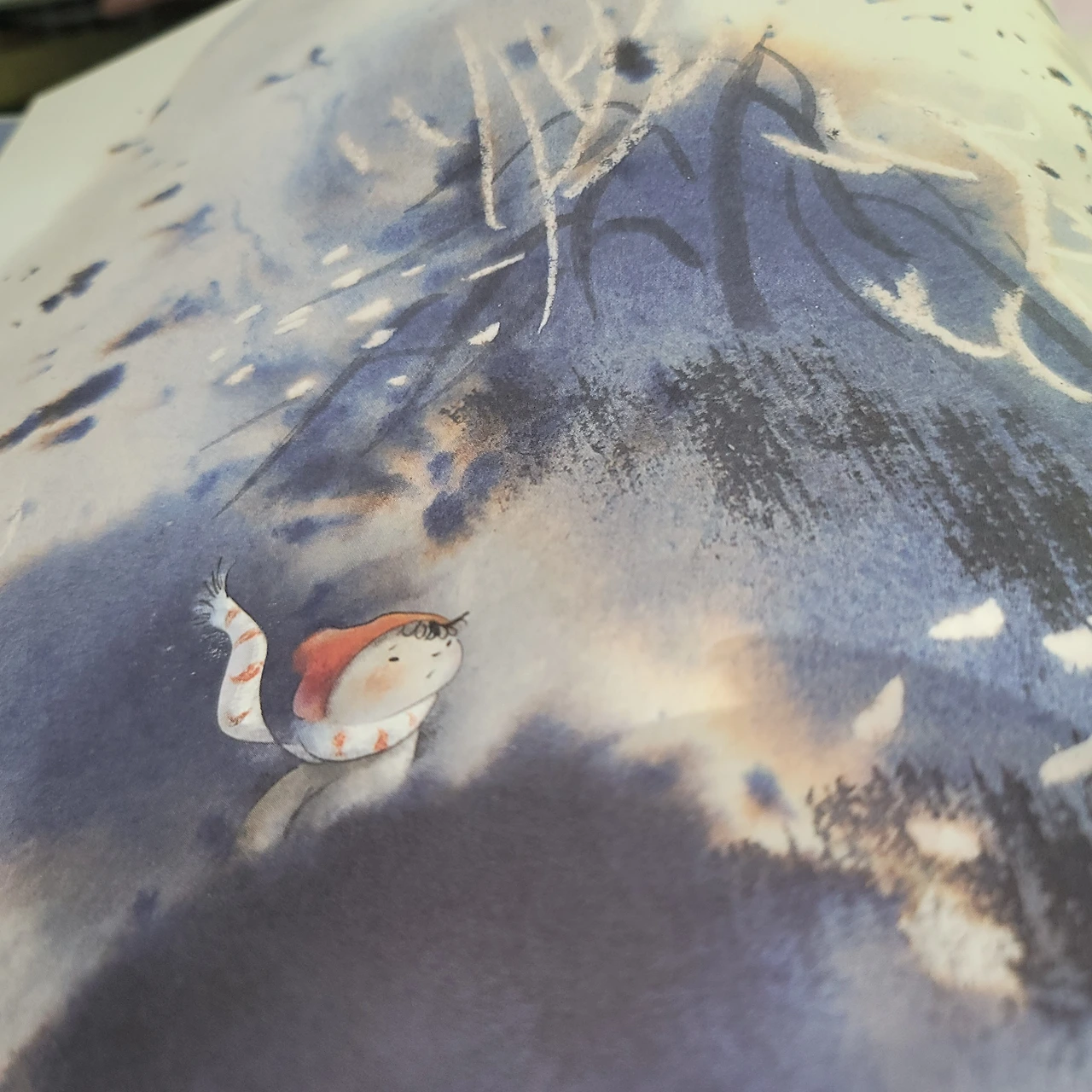 아이의 얼굴과 바람개비의 이미지가 이 책 전체를 통틀어 봤을 때 가장 크고 선명하게 등장합니다. 엄마의 가장 큰 메시지를 전달하는 장면이라고 할 수 있는데요, 이 장면 이후로 공허의 크기가 작아지고, 공허와 사이가 멀어지면서 소녀(년)는 당당한 자기의 앞길을 찾고 밝은 길을 걸어갑니다. 슬프고 오랜 아픔의 기억에서 벗어나게 되는 것이지요.
