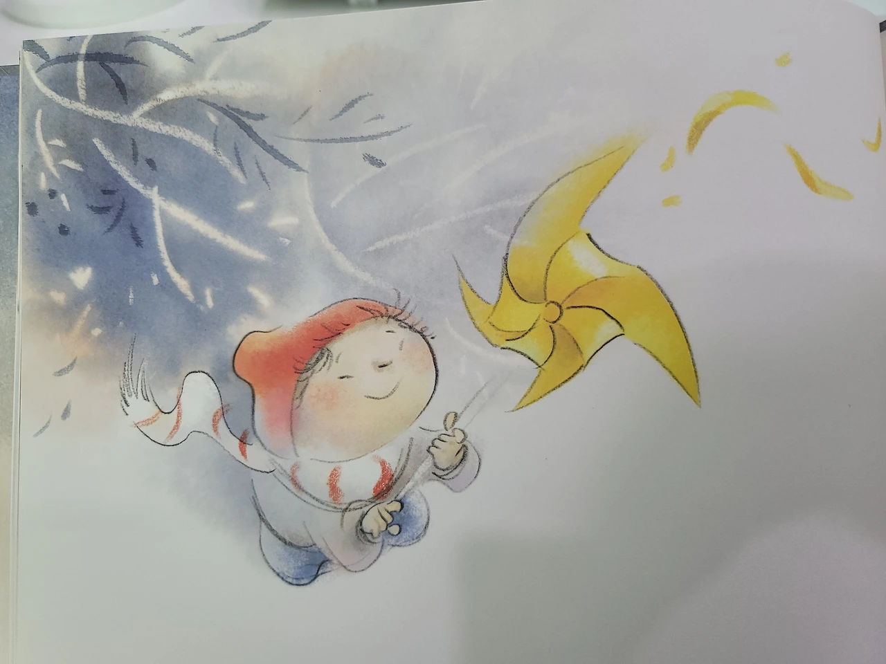 주인공 소녀(년)이 바람개비를 손에 쥘 때의 모습을 자세히 보세요.