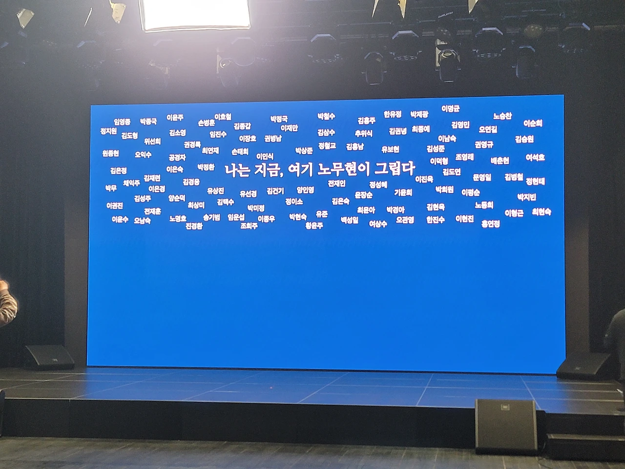‘노무현을 그리워하는 마음 하나’로 뭉친 우리 100명은 화면에 뜨는 질문에 ‘솔직한 자기고백’의 퀴즈에 답을 하러 오르내리는 시간이 장장 3시간이었다. 그리고 추가 질문에 대한 인터뷰로 이어졌다. 하나도 힘들지 않았고, 무엇 하나 어렵지 않았다. 질문을 받으면 다 내 이야기 같았고, 우리 인생을 담은 질문이었다. 진실 고백 같은 시간이라 웃다가 울다가 보낸 시간.