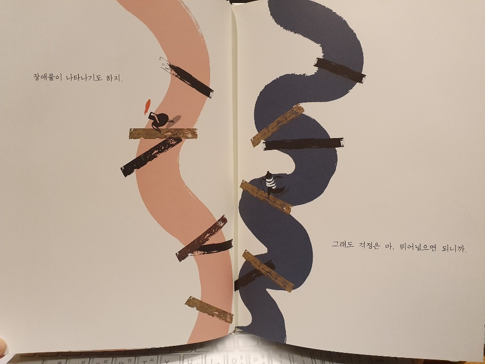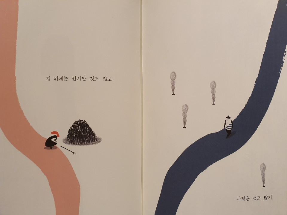 ⌜두 갈래 길⌟(라울 니에토 구리디, 2019) 이라는 그림책 제목만 보아도 하루, 한 달, 1년, 그리고 삶 전체를 통해 다양한 양 갈래 같은 기로를 어떻게 걸어가는지를 잘 표현하고 있다.