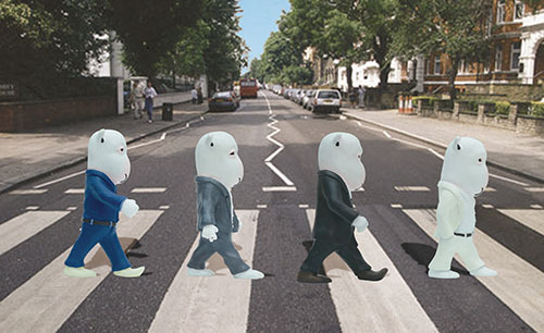 비틀즈의 'Abbey Road, 1969'의 앨범 커버를 패러디하기도 합니다.