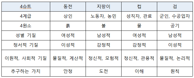 매이저 카드는 인생을 4가지 원소로 크게 보는 것이다.