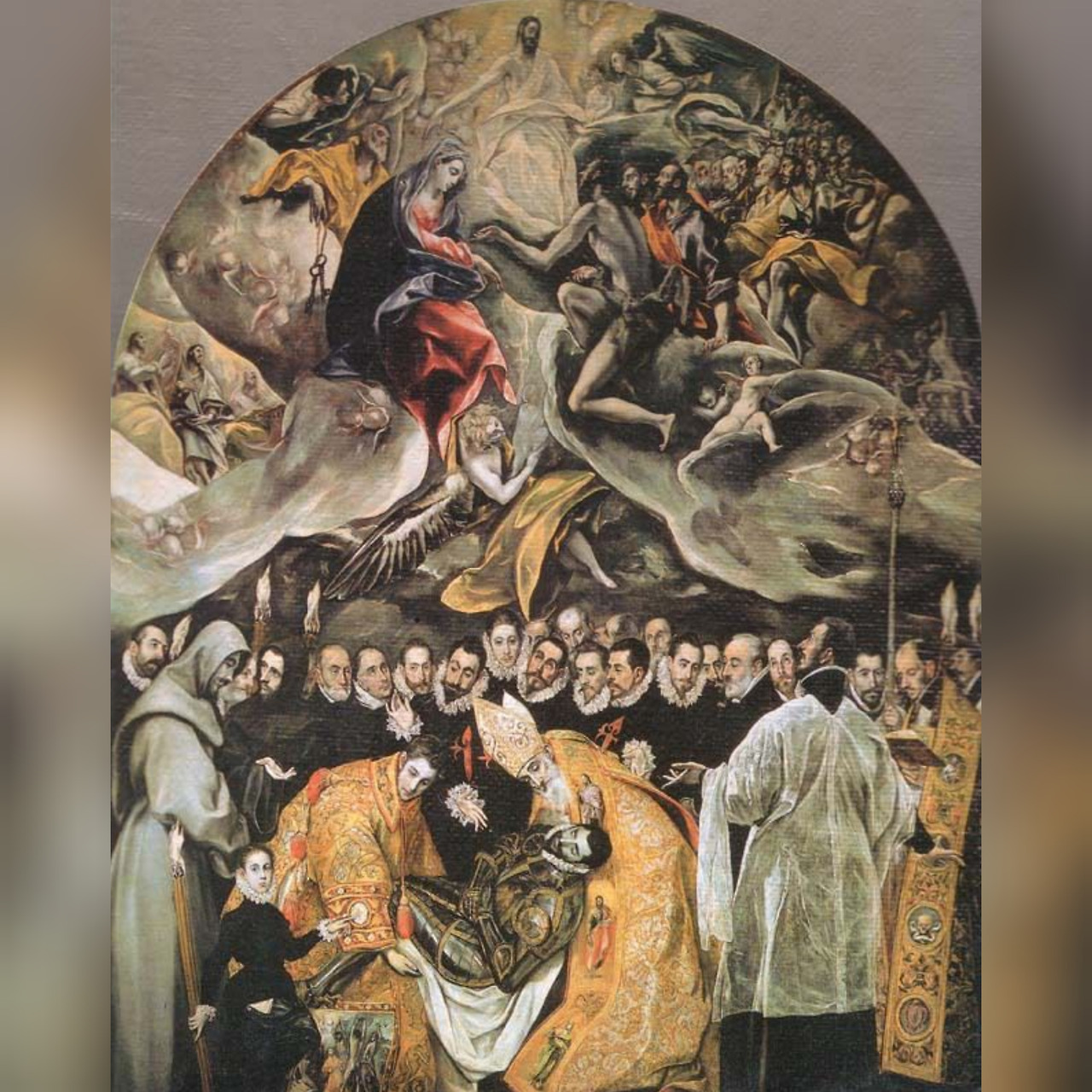 ‘오르가스 백작의 매장’ 엘 그레코는 당대 톨레도 시민과 성당을 위해 선행을 베푼 사람이며 사후 그의 재산까지도 성당에 기부한 사람이다. 그의 선한 영향력을 기리기 위해 신부가 엘 그레코에게 그림을 부탁했다고 한다.