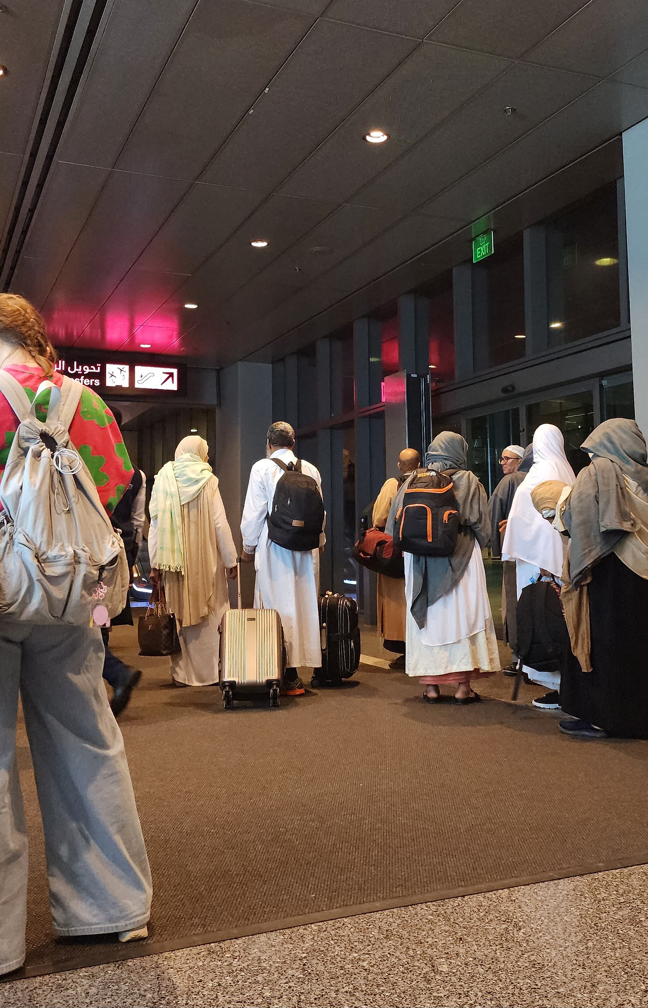 도하 공항에서 메카로 가는 비행기를 갈아타려고 이동하는 무리들 속에서 할머니의 굽은 등이 보이자 나는 두 손을 모았다.