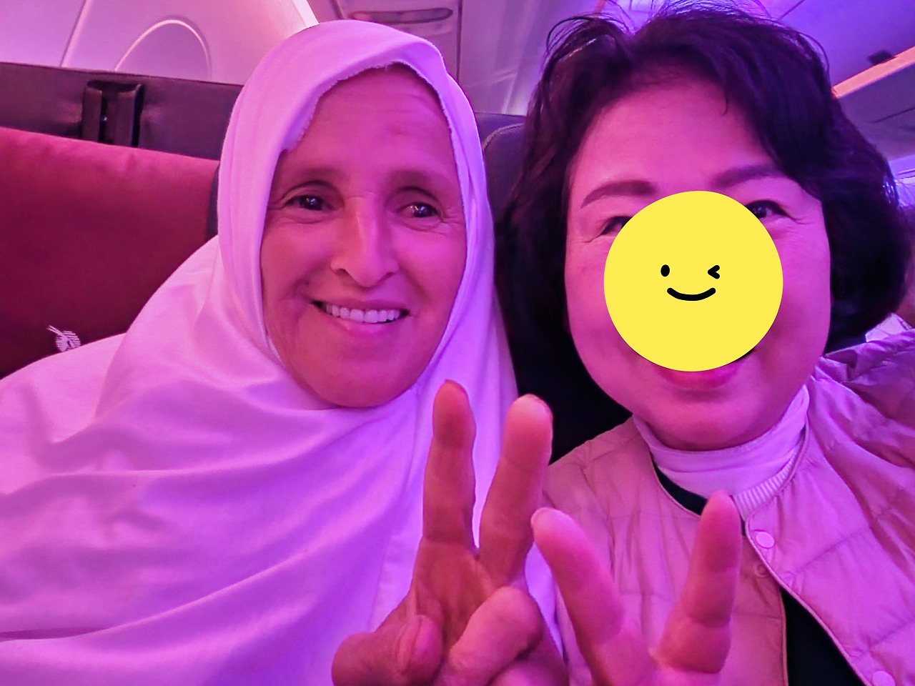 카사블랑카에서 도하로 가는 비행기 좌석이 한산하다고 느꼈는데 갑자기 부르카를 입은 할머니들과 칸두라를 입은 할아버지들이 단체로 오셔서 지정된 좌석을 찾느라 분주했다.