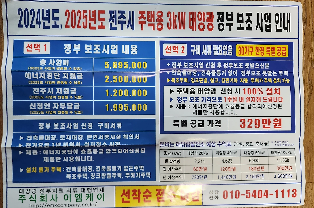그리고 정부 보조사업 없이 자부담 100% 설치의 경우 제가 알아본 회사(주식회사 ㅇㅇㅇㅇ)는 329만 원에 가능하다고 합니다.