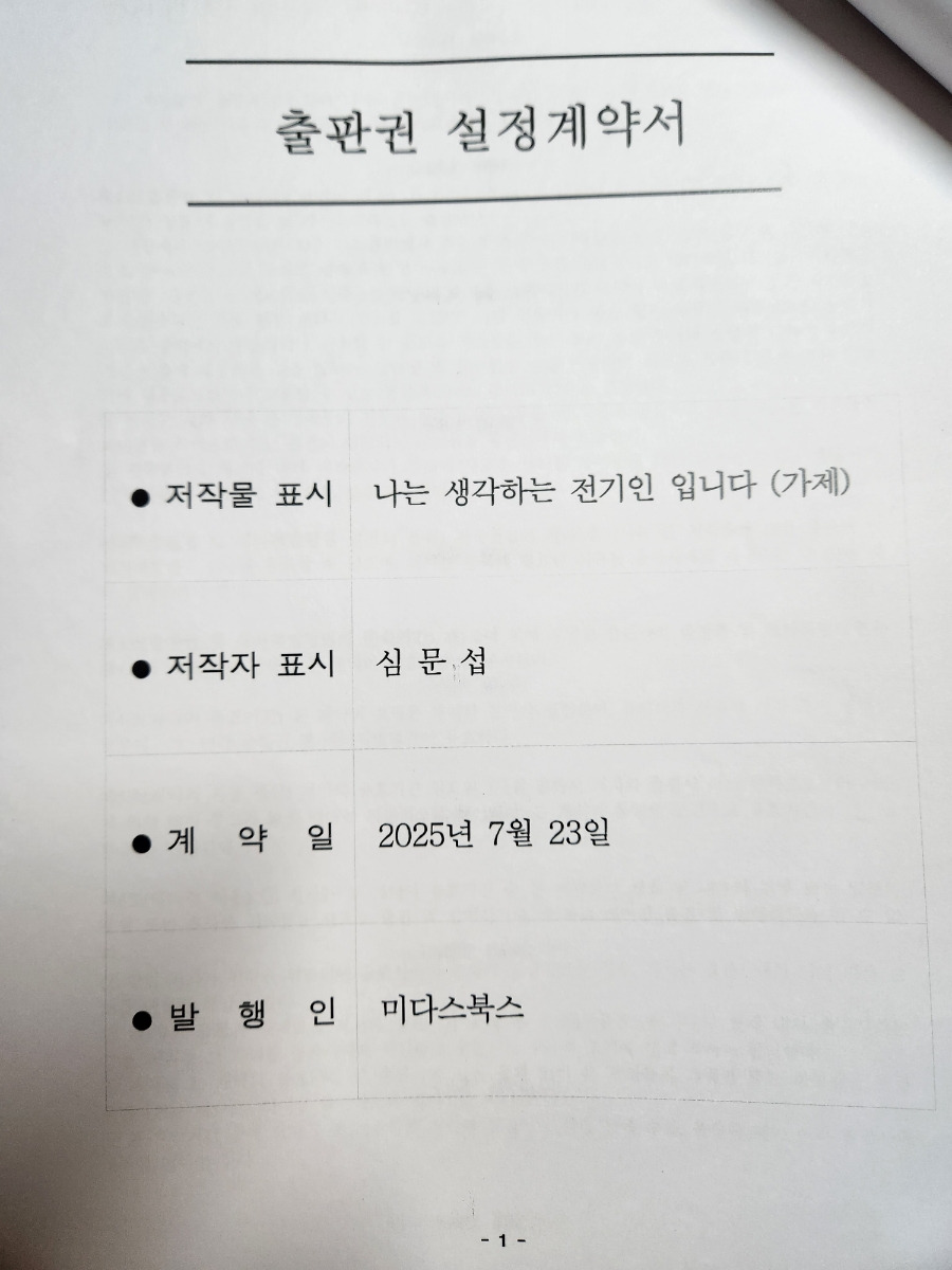 저는 선인세 ㅇㅇ만원을 받고 정식 출판 계약서를 작성했습니다.