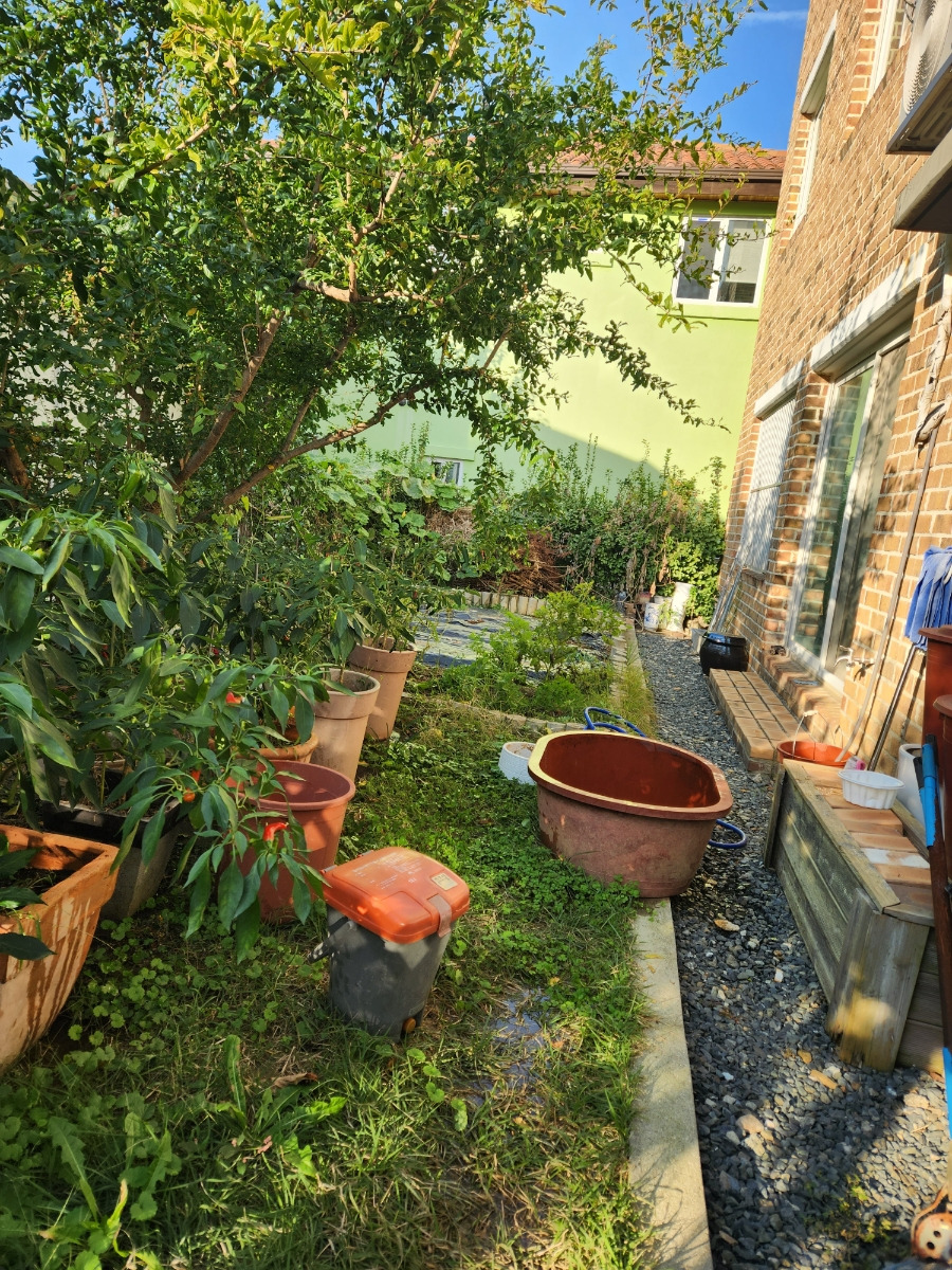 며칠 후, 텃밭에 나가 고추와 방울토마토를 수확하고