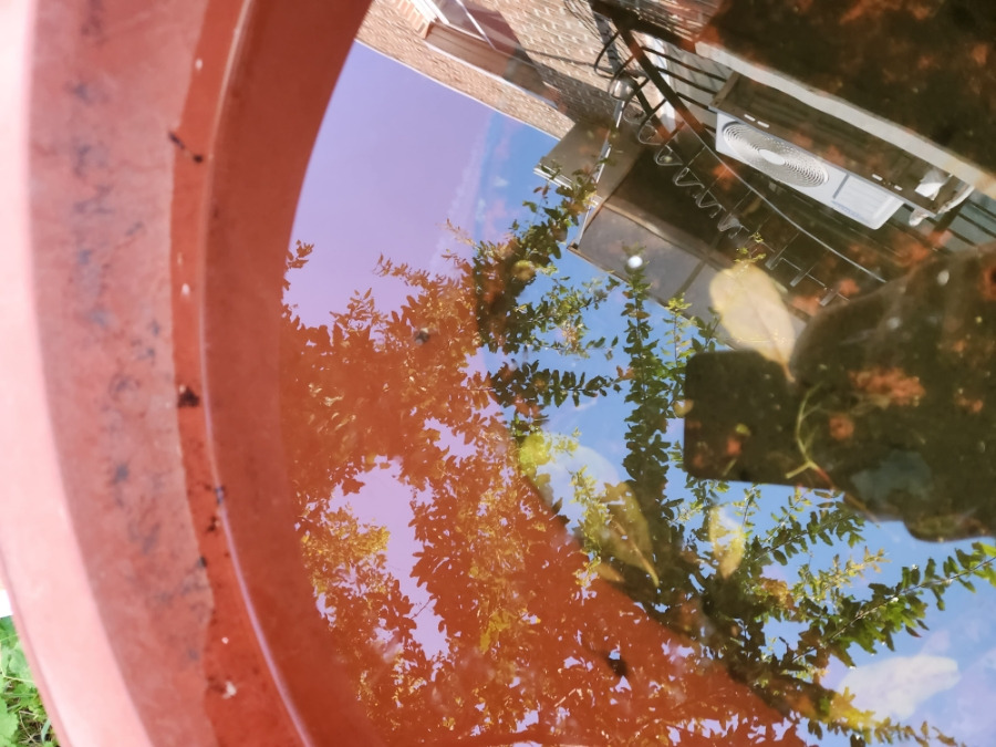 밭에 물을 주려고 큰 대야를 들여다보았습니다.