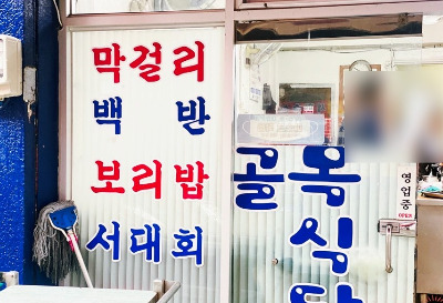 작은 식당이 있었다. 유리문에 막걸리, 백반, 보리밥, 서대회라고 쓰여있는 작은 식당. 백반 5천 원, 막걸리 3천 원. 백반을 시켰다. 밥과 시원한 된장국, 생선 토막, 겉절이 김치와 갓김치, 갖은 나물, 비벼먹을 손님을 위한 냉면그릇과 씻어 무친 김치, 참기름, 고추장 등이 넓은 오봉에 가득 차려졌다. 밥과 국은 셀프 무한 리필. 반찬도 무한리필로 주시는데 기본이 푸짐해 함부로 더 주세요, 못 한다.