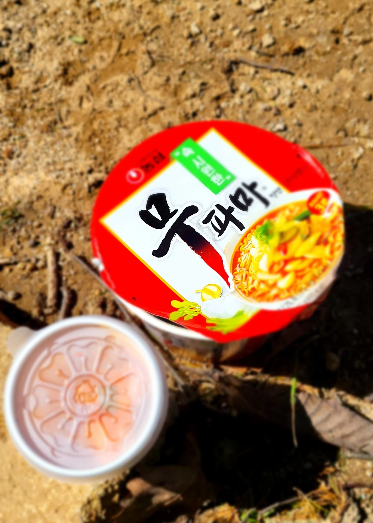 가방에 담아온 컵라면으로 점심. 식후 커피 한 잔 하는데 햇볕은 엄청 뜨겁다.