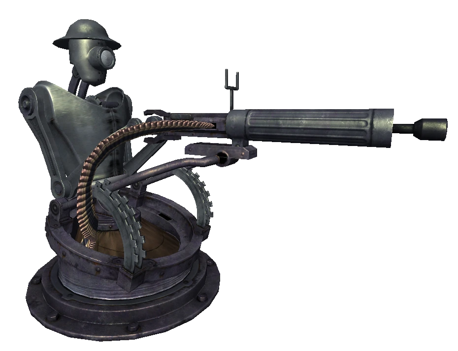 좋은 의미로든 나쁜 의미로든 기관총은 인류 군사사에 있어 거대한 전환점이기에 스팀펑크에서도 그 얼굴을 빠지지 않고 비춘다. 다만 그것에 대한 바리에이션으로 여러가지의 형태의 기관총이 등장하는 경우도 있는데 바이오쇼크의 등장 적들 중 하나인 '자동 경비 시스템' 이 그 예시 중 하나로, 인공지능과 결합하여 감지되는 적들을 순식간에 고깃조각으로 만드는 방법 말이다.