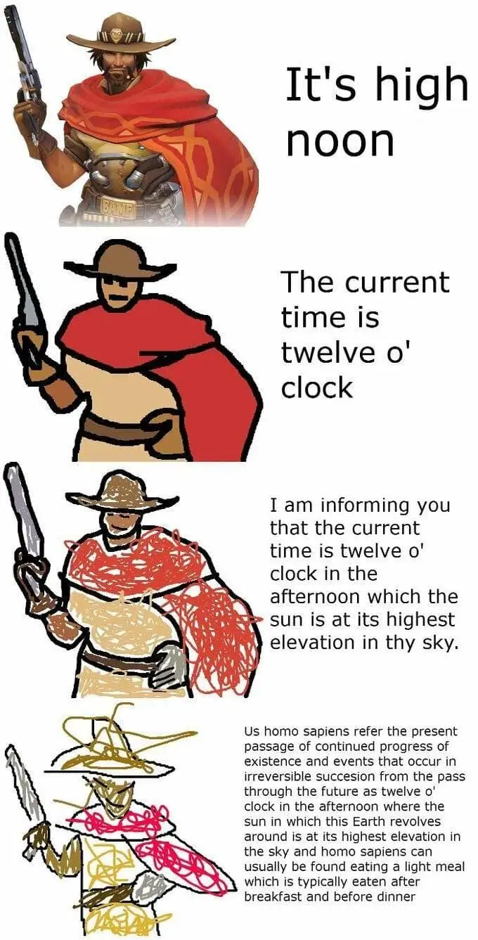 3) I’m informing you that the current time is twelve o’clock in the afternoon which the sun is at its highest elevation in the sky.