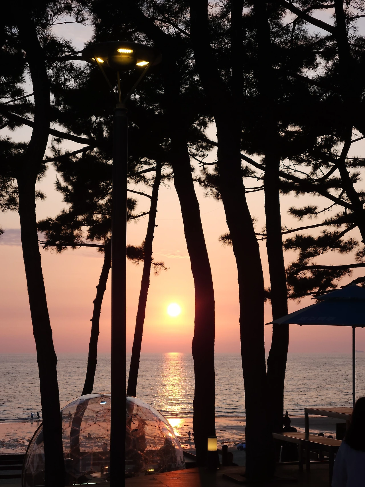 나는 집에서 1시간이면 올 수 있는 서해안 꽃지 해수욕장에 가족과 함께 와서 떨어지는 해를 바라보았다. 점심 먹고 카페에 들러 차를 마시며 아버지가 어떻게 어머니와 사귀게 되었는지 여쭤보았다. 아버지는 그냥 군대 제대하고 시골에서 초등학교 교사를 하고 있던 어머니를 만나고 싶어 무작정 찾아갔다고 하신다. 아버지의 20대 청년이었을 때 엄마를 향한 마음이 저 붉은 해 같았을거라 상상했다. 그리고 수능특강 문제의 작가와 같은 어조로 이 순간 만으로도 내 인생은 가치가 있다라고 똑같이 말할 수 있었다. 서해안의 석양은 정말 소나무 사이로 해가 보여서 더 멋지고 아름답다. 바다가 온통 붉은 색이 되면 무아지경이 된다.