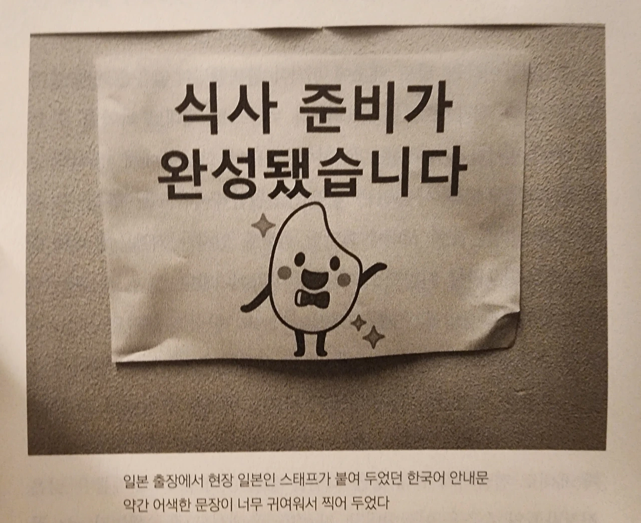 잡지 <번역하다>에 실린 사진을 보고 한참 웃었다. “식사준비가 완성됐습니다”. ‘식사준비가 다 되었습니다’가 맞지만, 의사소통에는 문제가 없다. 약간은 이상한 문장이라도 조금 느린 속도라도 한국인 억양과 발음이라도 내 표현을 다 할 수 있고, 친구가 하는 말을 다 알아들을 수 있고, 직업에서 필요한 영어가 불편하지 않다면 나는 대만족이다.