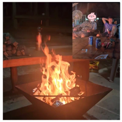 저녁을 먹고 숙소로 돌아와 미리 준비해 놓은 장작을 피우며 요즘 유행하는 불 멍을 하였다. 불 앞에 둘러앉아 맥주를 한 잔씩 하며 이런저런 이야기꽃과 웃음꽃을 피우니 날이 바뀐 줄도 모르게 시간이 흘러간다.