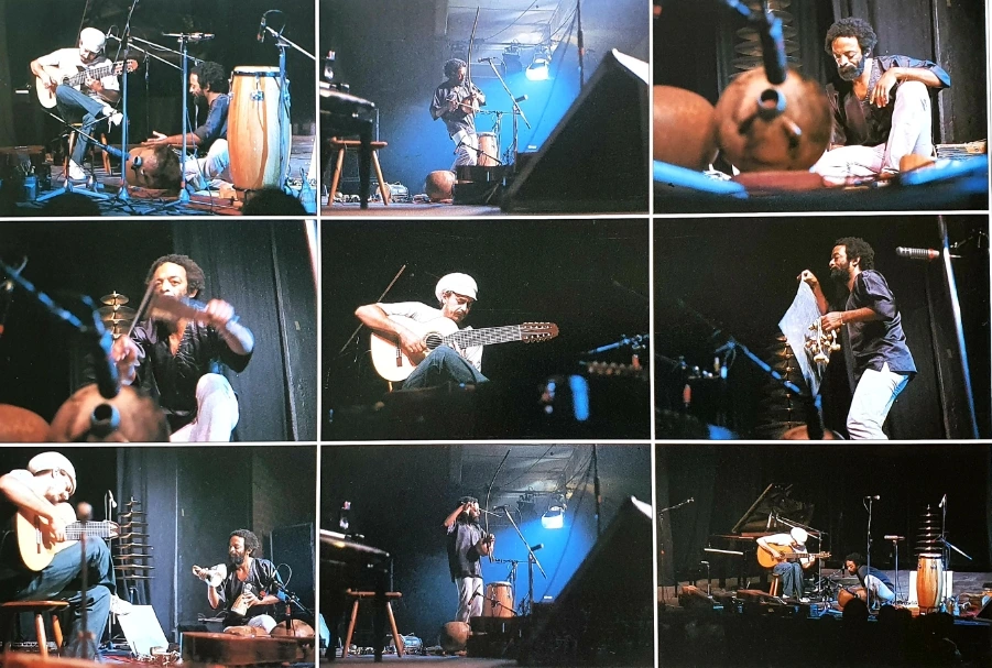 지스몬떼는 기타, 피아노, 그 외 다양한 악기를 연주하는 다악기 연주자입니다. 여기서는 원주민 오르간을 연주하는데 타이틀 곡 "산포나"에서 확인할 수 있습니다.