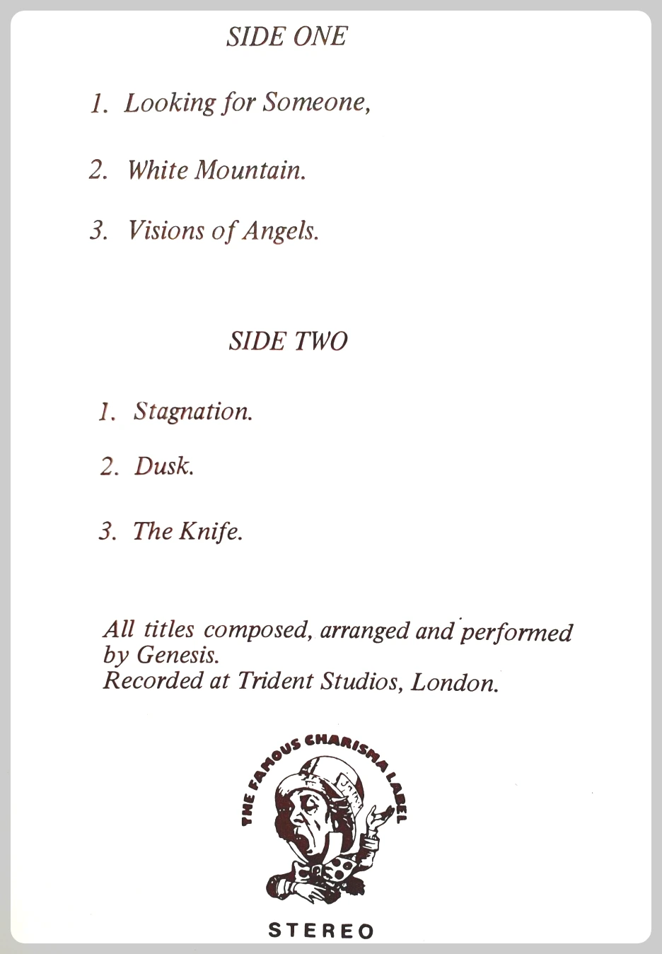 유명 밴드들이 첫 앨범에서 극찬을 받은 경우도 있고 정반대인 경우도 있습니다. 제네시스는 후자이지만 1집이 약간의 워밍업이었고 이전의 곡들을 모아서 녹음한 것을 본다면 그리 절망할 상황도 아니었을 겁니다.