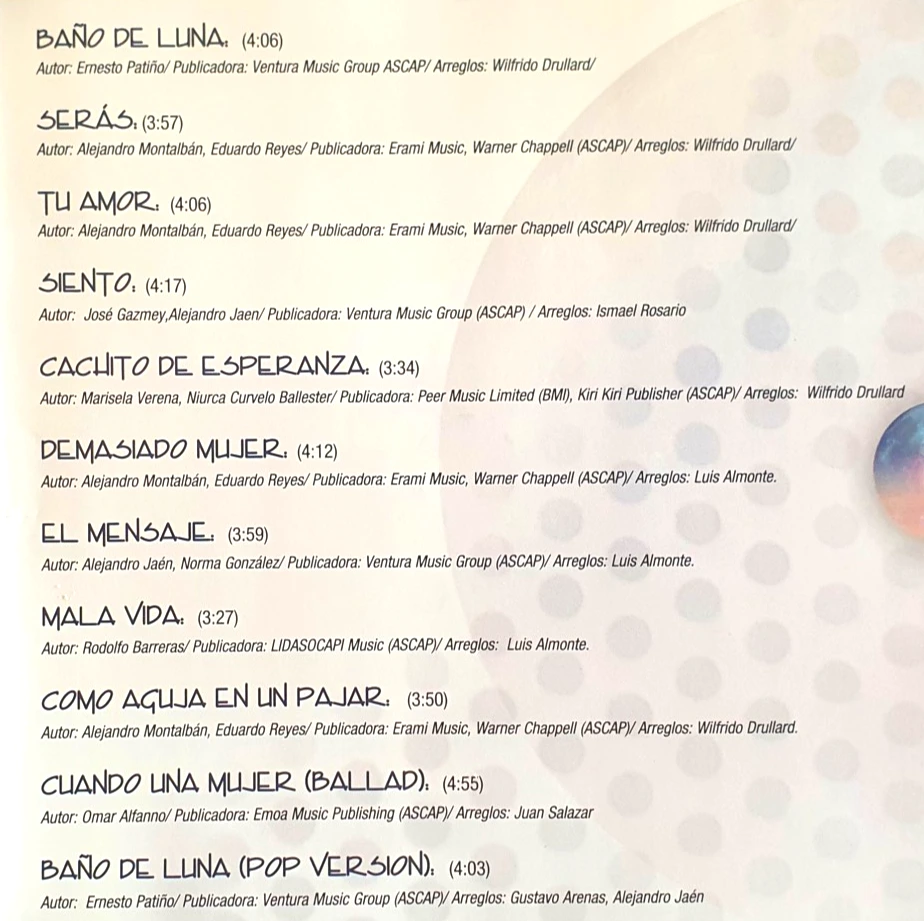 가수 겸 배우인 레온이 2000년 발표한 앨범 <바뇨 데 루나>입니다. 빌보드 라틴 차트 3위, 트로피컬 차트 8위에 랭크되었습니다.