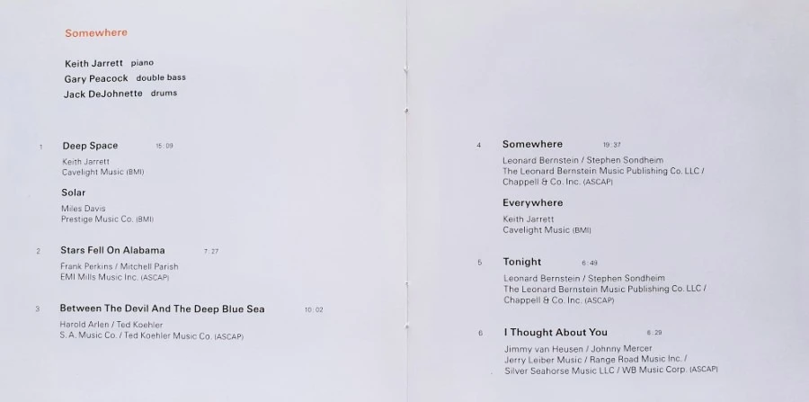 이 곡에 자렛이 Everywhere(어디에서나)를 화답하듯 이어서 연주합니다.