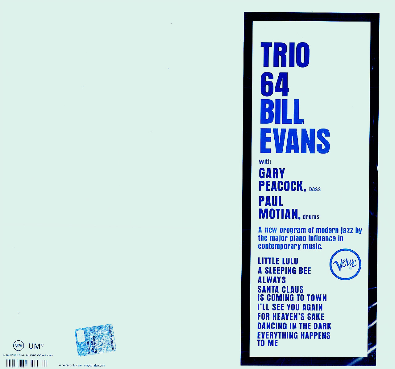 이 앨범도 <트리오 '64>와 동일하게 에반스나 멤버들의 오리지널 곡은 없습니다.