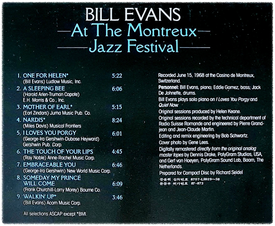 이 앨범은 새로운 트리오의 첫 라이브 공연이자 에반스에겐 두번째 몽트뢰 실황이 됩니다.