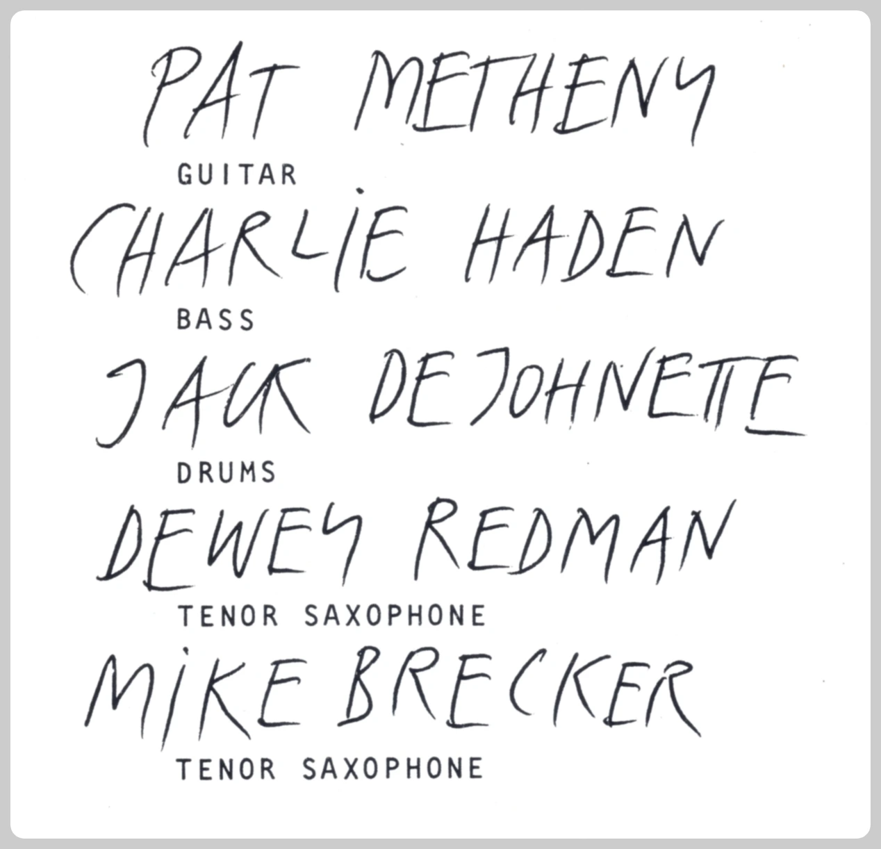 베이스 연주의 새로운 지평을 연 찰리 헤이든, 키스 자렛의 스탠더즈 트리오에서 활약한 잭 디조넷이 드럼을 담당합니다.