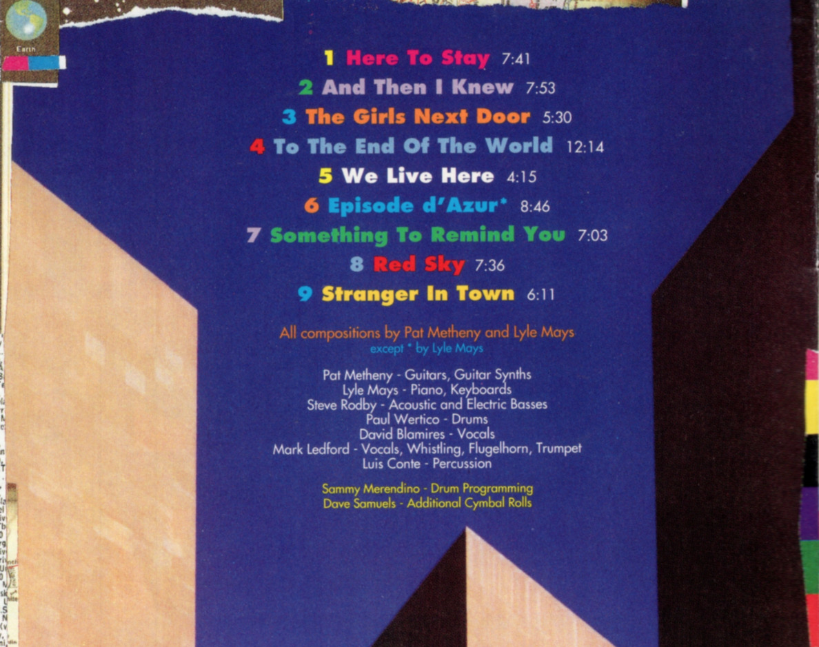 세 작품 모두 디자이너가 다름에도 불구하고 앨범 커버에서 동질감이 느껴집니다. 그 동질감은 음악에서도 드러납니다. 다만 PMG 통산 7집인 <We LIve Here>는 전작과 6년이라는 시차를 두고 있습니다. 그 사이 팻 메스니는 솔로 작업과 콜라보 연주에 주력하였습니다.