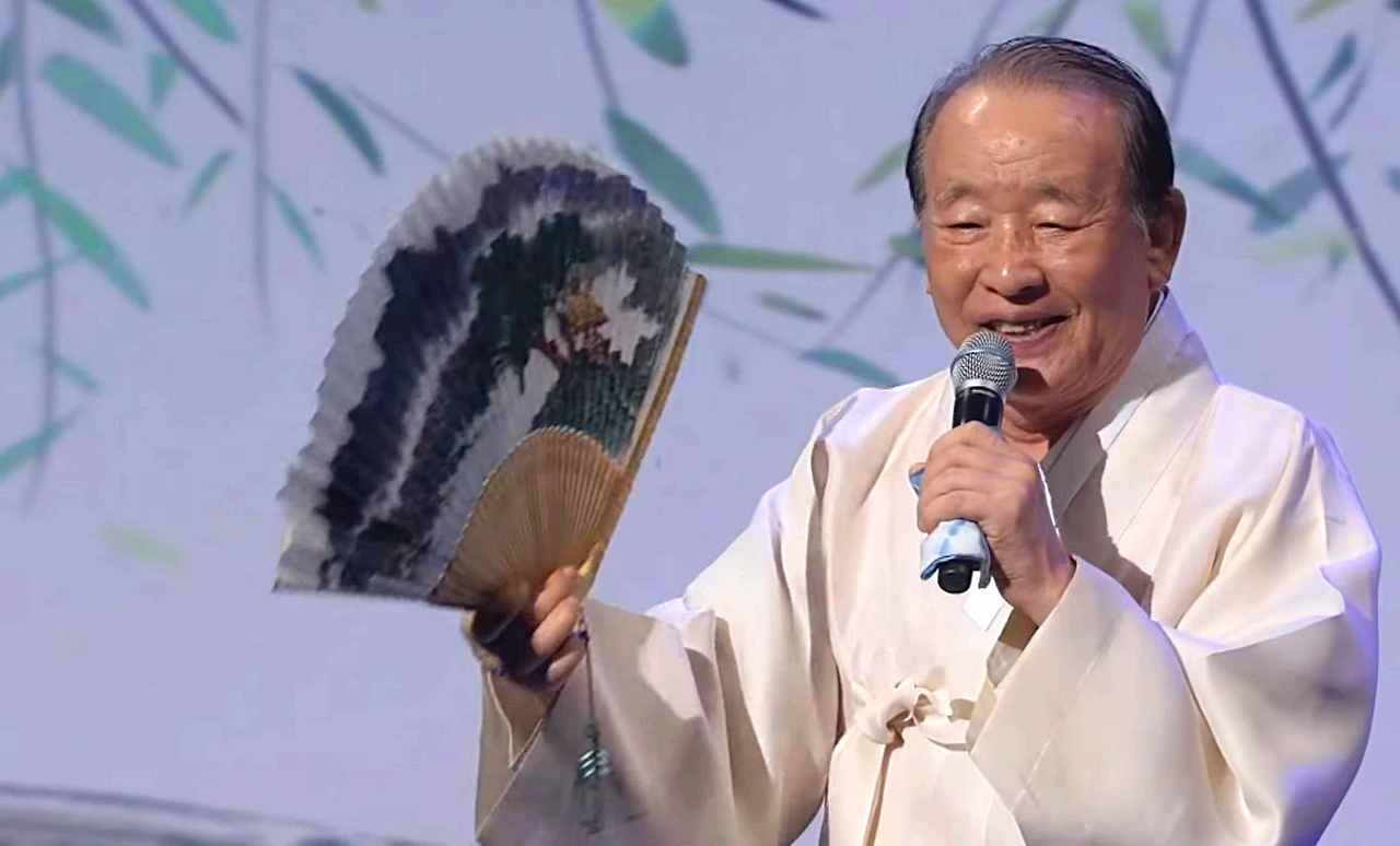 좌: 명창 박동진 '범 내려온다', 우: 명창 조상현 '사철가' 판소리 공연장. 고수가 무대 우측에 정좌하고 북을 끌어 당깁니다. 소리꾼이 등장합니다. 고수의 장단에 맞춰 소리꾼이 고전문학 한 마당의 줄거리를 풀어 나갑니다. 고수가 추임새로 소리꾼과 대화를 합니다. 이를 지겨보는 관객들도 소리꾼이 들려주는 이야기에 빠져 듭니다. 명창은 소리(노래), 아니리(말), 발림(몸짓)으로 연기를 하며 이야기를 들려줍니다. 이 장면은 오페라 가수들이 무대에서 오케스트라의 반주에 맞춰 연기를 하는 것과 유사합니다.