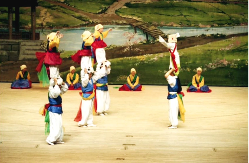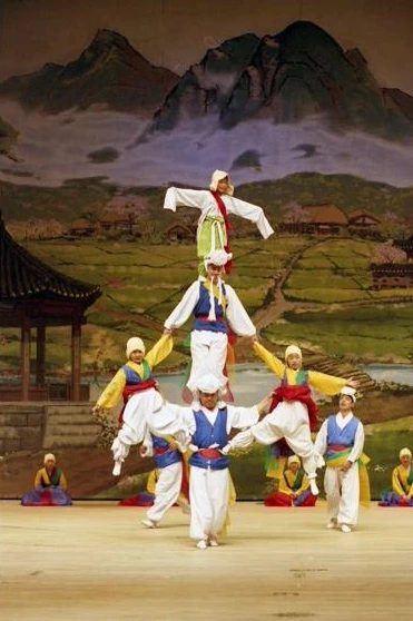 무동이 추는 춤과 어깨 위에 무동을 올려서 하는 놀이로 구성됩니다. 이 장면은 남사당패의 공연에서도 흔히 등장합니다.