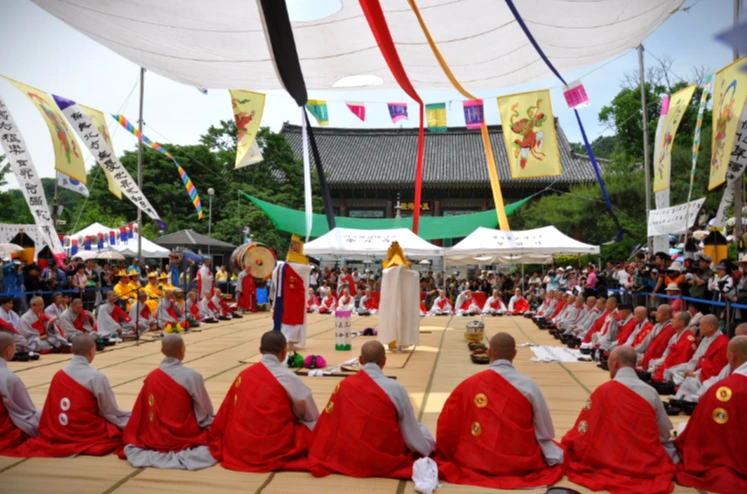 불교의식에서 상단의 삼보(부처, 부처의 가르침, 부처의 가르침을 따르는 승려)에 향기로운 꽃을 공양하며 불도성취를 기원합니다.