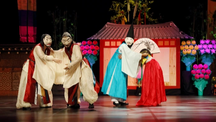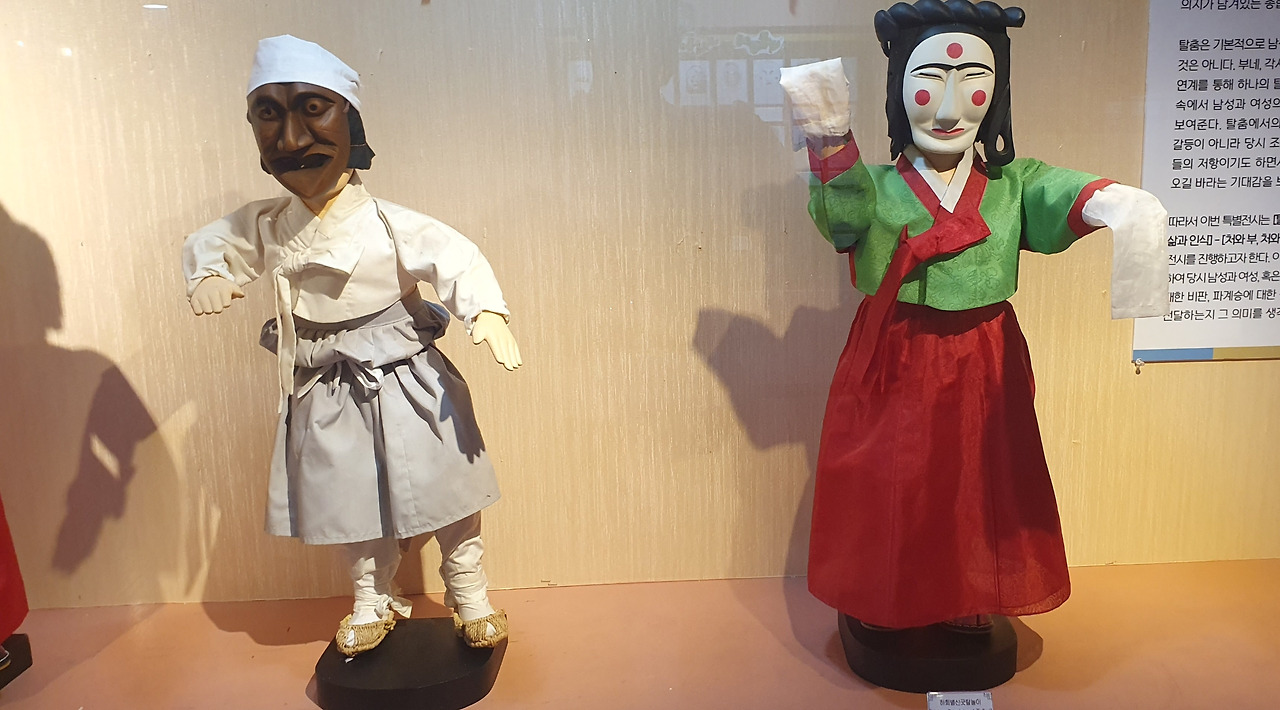 총 33개 배역(상좌, 목중, 사자, 양반, 노승, 미얄 등)에 여섯 과장을 피리(태평소), 장고, 북, 꽹과리로 연주하는 은율가락에 맞춰 춤, 재담, 연행가요로 펼치는 풍자와 해학이 곁들여진 가면극입니다.