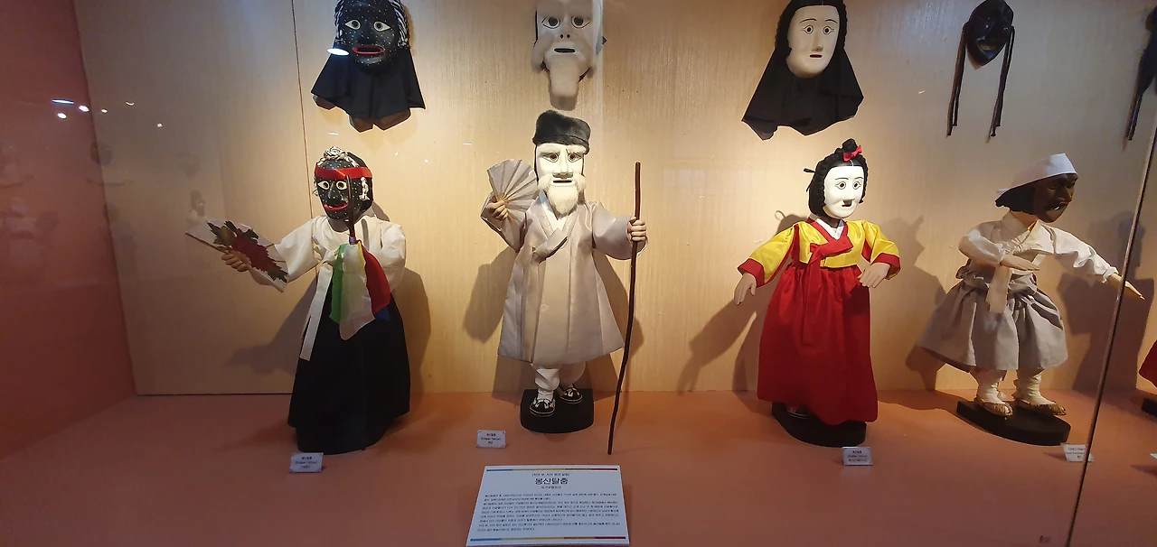 총 33개 배역(상좌, 목중, 노장, 취발이, 사자, 말뚝이, 양반, 미얄 등)이 탈을 쓰고 일곱 과장에서 해서삼현육각(피리2, 대금, 해금, 장고, 북) 반주음악에 맞춰 재담, 연행가요, 춤으로 펼치는 풍자와 해학이 곁들여진 가면극입니다.