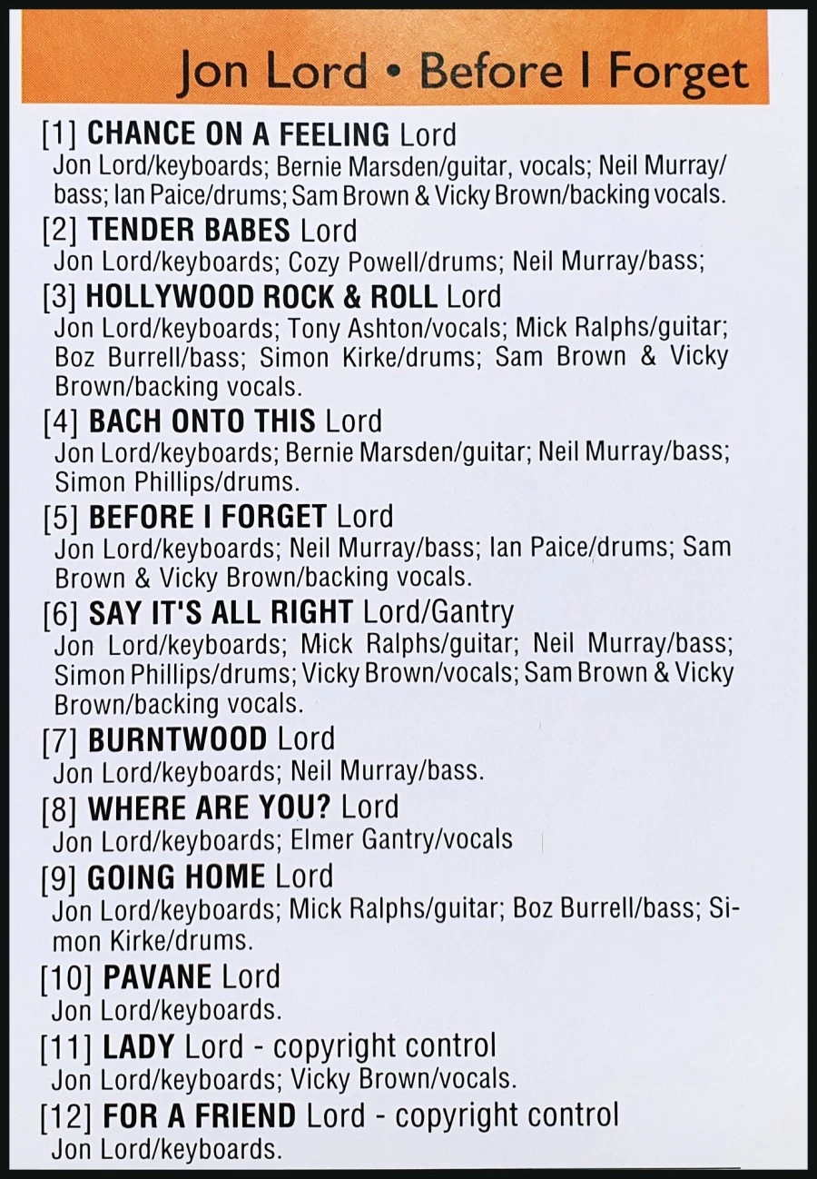 총 12곡 구성이며 전곡을 존 로드가 작곡하였습니다. 이 앨범에서 로드는 키보드, 피아노, 오르간, 무그 등을 연주하고 있습니다.