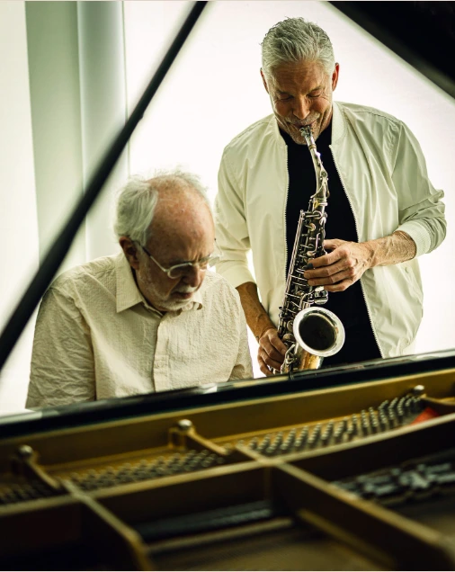 피아니스트 밥 제임스(1939~)와 색소포니스트 데이브 코즈(1963~)의 정겨운 사진을 보고 계십니다. 둘의 음악적 공통분모는 스무드 재즈와 컨템포러리 재즈라고 할 수 있습니다. 반면 밥 제임스는 CTI, 타펀 지 등의 레이블을 통해 감각적이고 펑키하며 신나는 재즈 퓨전과 재즈-펑크를 두루 선보였습니다. 데이브 코즈는 작고한 알토이스트 데이빗 샌본(1945~2024)을 떠오르게 하는데 헤비메탈, 록, 재즈 등에 걸쳐 있지만 우리에게는 특히 스무드 재즈를 대표하는 색소폰 주자로 알려져 있습니다. 코즈의 대표작에는 몇 장의 크리스마스 앨범이 있는데 크리스마스 시즌에 듣는 재즈로는 톱이라고도 할 수 있습니다. 같은 듯 다른 두 뮤지션은 수십년간 친분을 유지하고 있는데 2025년 3월 의미 있는 듀오 앨범을 발표하였습니다.