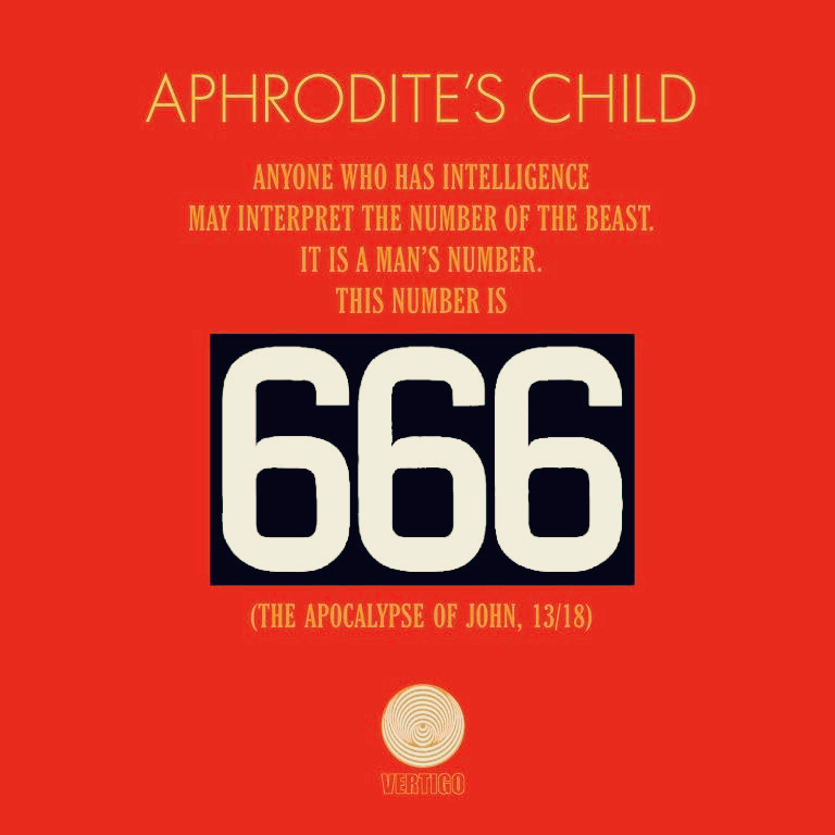 왼쪽 사진은 영국 NWOBHM(뉴웨이브 오브 브리티시 헤비 메탈)을 대표한 아이언 메이든의 1982년 3집 <짐승의 수>이고 오른쪽은 그리스 프로그레시브 록 밴드 아프로디테스 차일드의 1972년 3집 <666>입니다. 아프로디테스 차일드에는 키보디스트 반젤리스 파파데나시우와 보컬리스트 데미스 루소스가 있었습니다. 두 앨범은 10년의 간극이 있고 타이틀명은 같은 의미입니다.