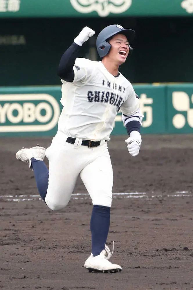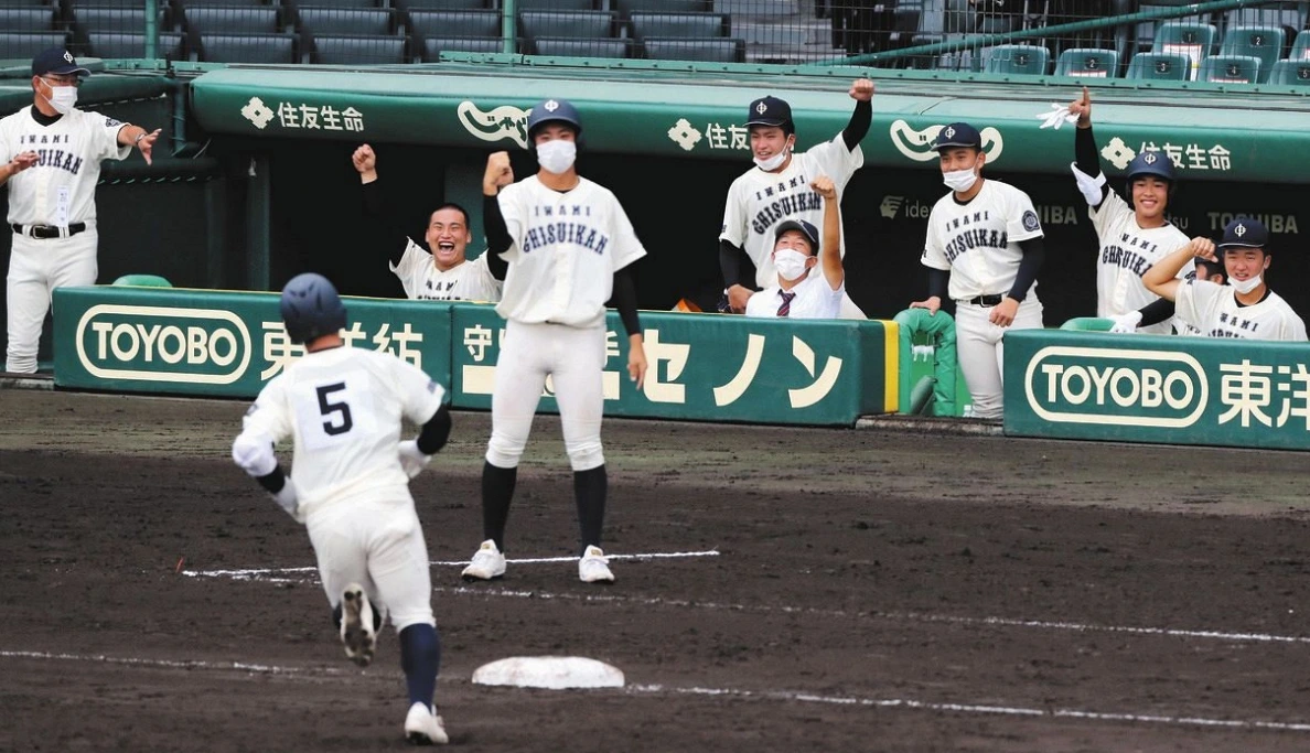 한쪽 무릎을 꿇으며 자세는 무너졌지만 마음을 담은 타구는 고시엔의 좌측 스탠드를 넘어가는 결승 투런 홈런이 되었습니다. 이 홈런으로 이와미치스이칸은 2009년 교명 변경 이후 고시엔에서 첫 승이자 교명 변경 전으로 거슬러 올라가 2003년 이후 18년 만의 승리를 거두었습니다. 2003년생 만 18세 선수가 이끈 승리이기도 했습니다.