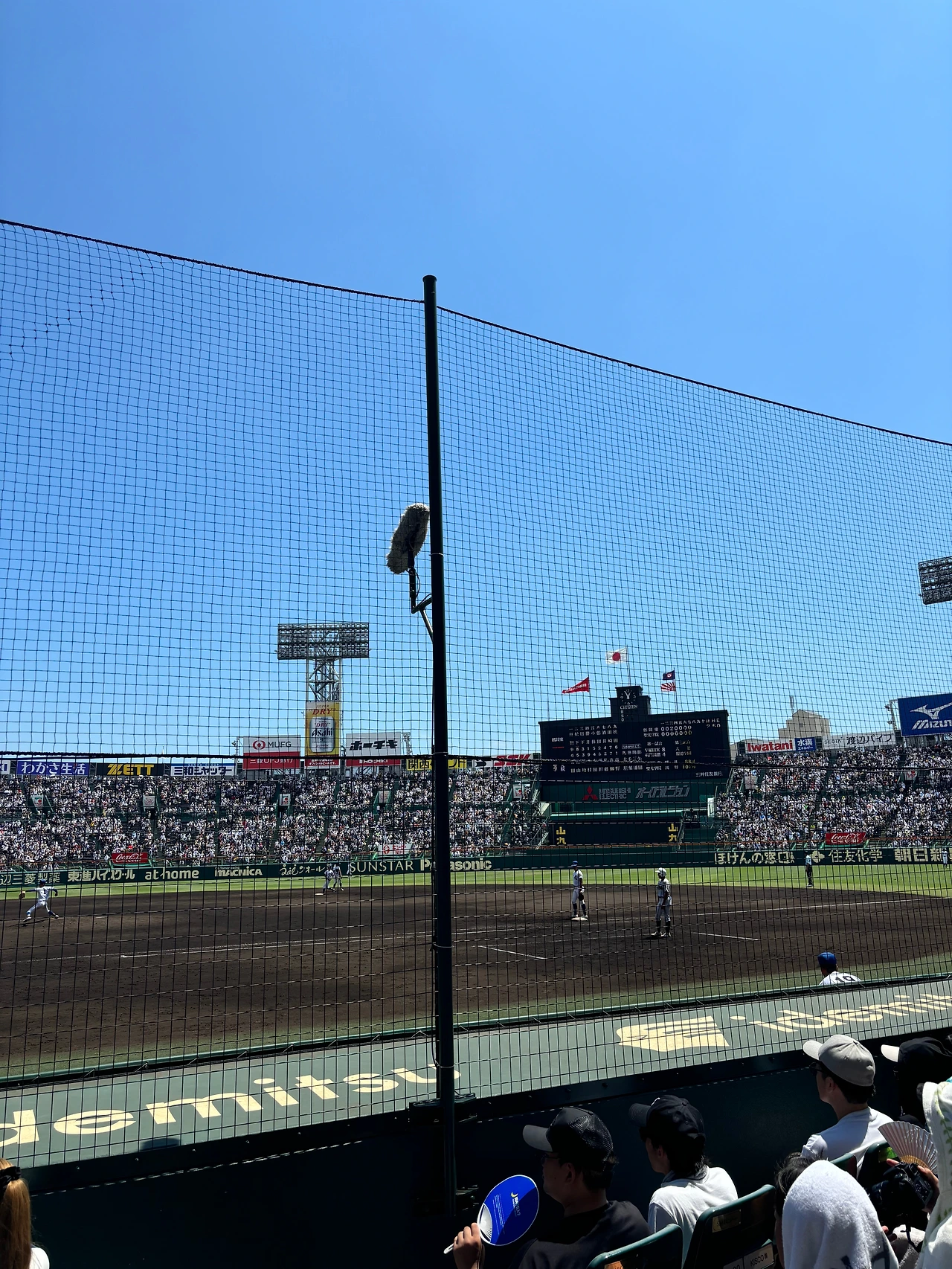작년 여름이었습니다. 비행기에서 내려 입국 심사를 받으러 갈 때 와세다(서도쿄)와 코난(오키나와)의 경기가 한창 진행 중이었습니다. 간사이 공항에서 숙소인 아마가사키까지는 버스로 한 시간, 천천히 달리는 버스 안에서 계속해서 경기 중계를 봤습니다. 그리고 숙소에 짐을 놓고 바로 나와 전철을 타고 향한 고시엔. 날이 정말 뜨거웠고 푸른 하늘 아래 넓게 펼쳐진 짙은 녹색의 잔디와 태양빛을 머금은 듯한 검은흙, 그리고 넓게 울려 퍼졌던 브라스밴드의 응원까지. 제 2024년의 고시엔은 그렇게 시작되었습니다. 도착했을 때는 츠루오카히가시와 세이코학원의 경기, 7회 초가 진행되고 있었습니다.