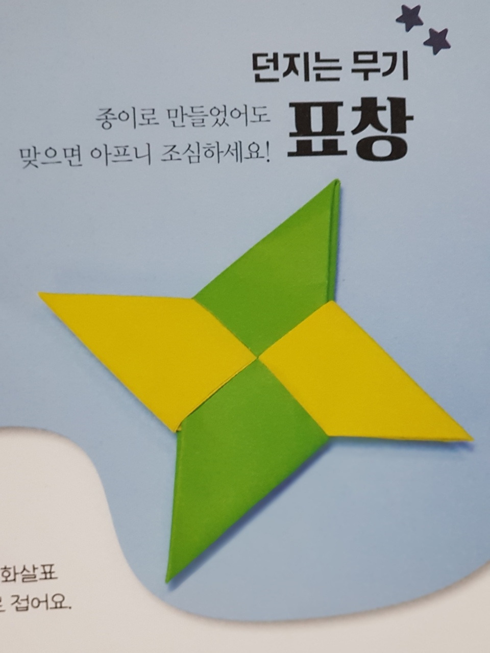 1호가 6살이 되던 날 어린이집에서 친구가 '표창'을 접어왔다며 자기도 그 표창을 접어야겠단다.