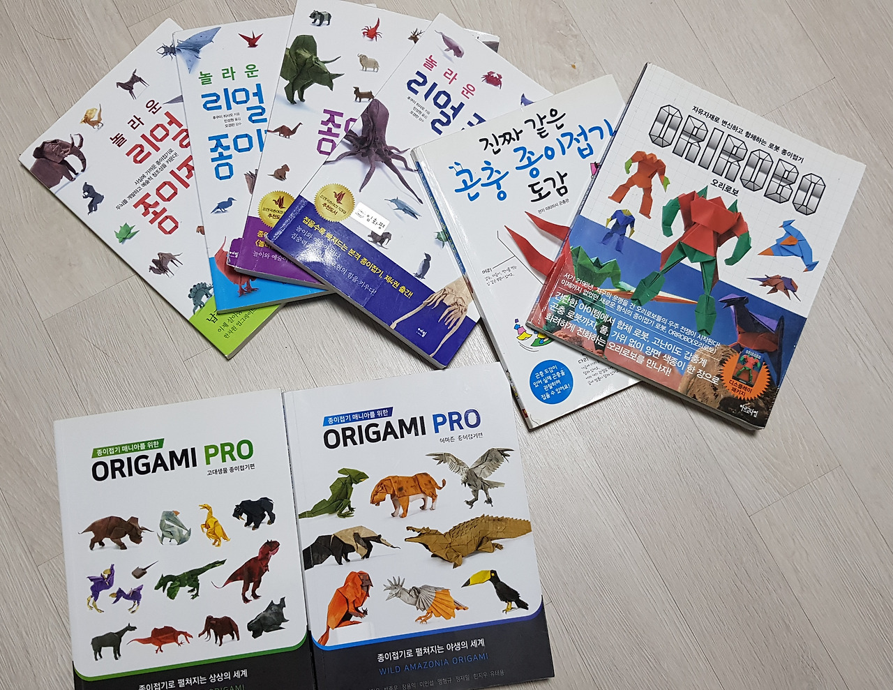 1호가 보는 종이접기 책들. 이것 외에도 10권 가량 더 있다!