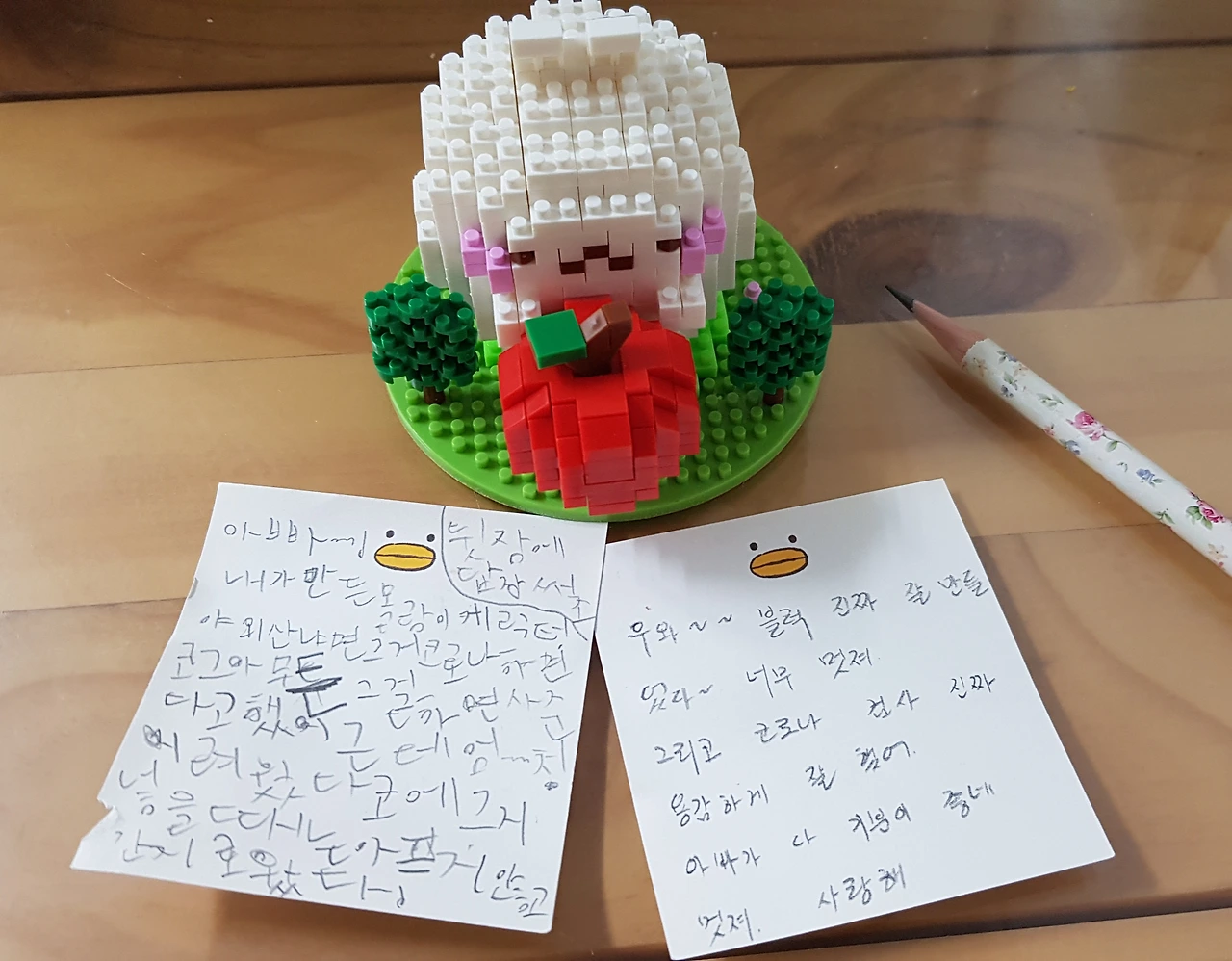 한글을 쓰면서부터 종종 잠들기 전 아빠에게 저렇게 자기가 하고싶은 말을 적어 러브레터를 남긴다.