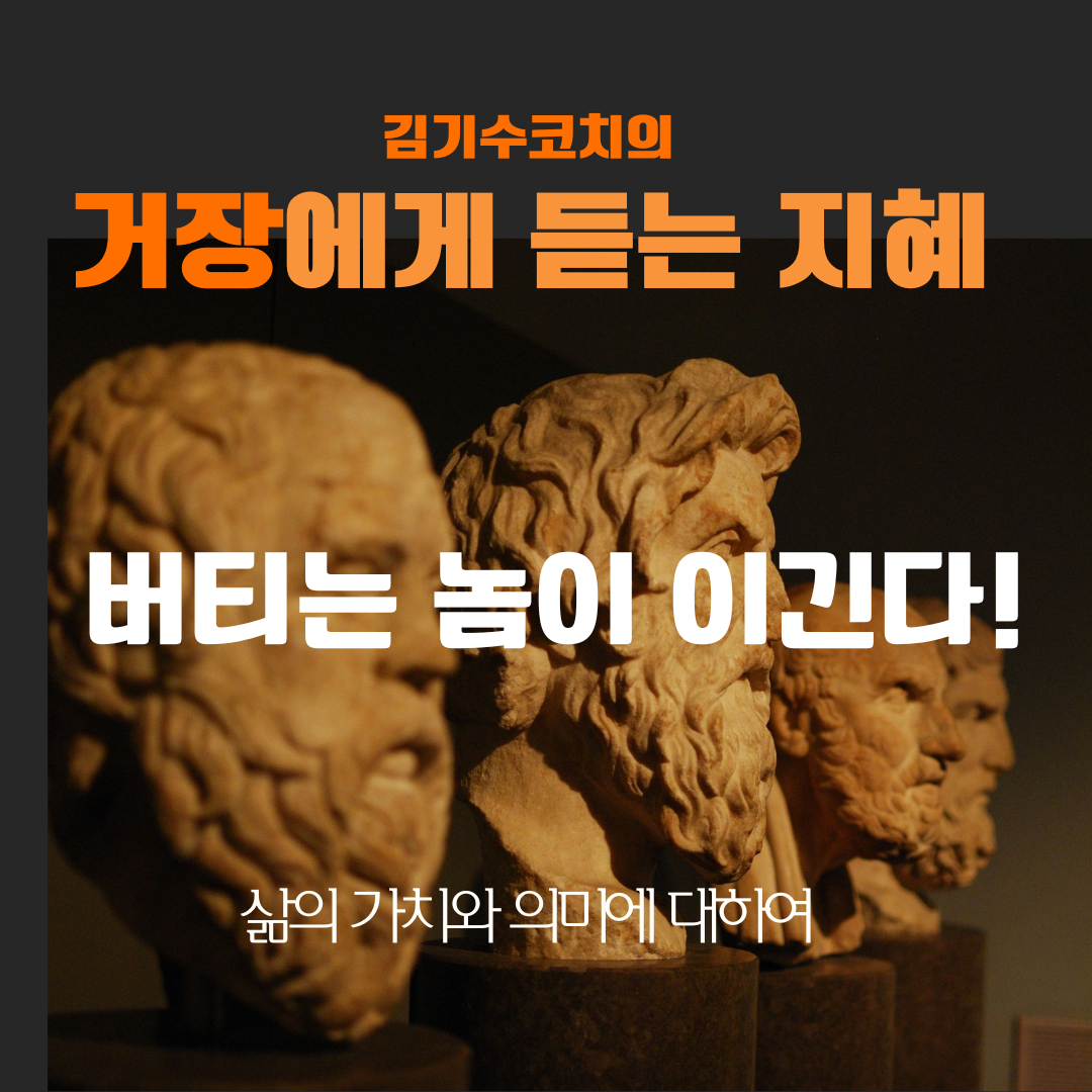 그는 굳이 이기려고 하지 말라고 한다. 세상에서 가장 어려운 일은 '이기는 것'이니, 다만 '버티는 데 집중하라'고 말한다. '여기서 어떻게 더 버틸 것인가?'를 생각해야 한다. 왜냐하면, 포기를 고민하는 것은 '상처'를 주지만, 버티기를 궁리하는 것은 '답'을 주기 때문이다.