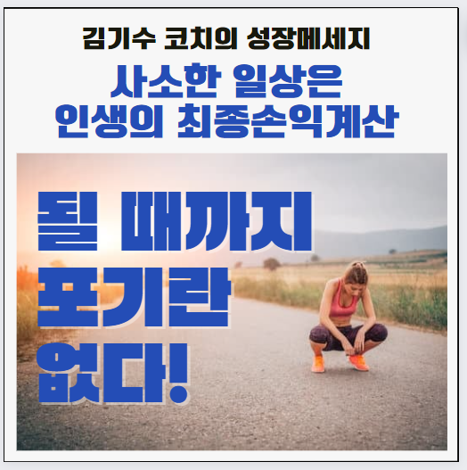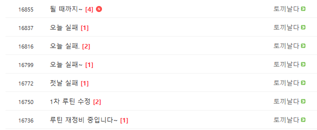 부끄러운 게 문제가 아니다. 내가 남에게 어떻게 보일까 하는 것이 중요한 게 아니다. 내가 바뀌어야 할 필요성을 느끼고 결단했다는 사실, 그리고 내가 바뀌어야 한다는 사실이 중요한 것이다. 몇 번 실패하는 게 뭐 대순가? 될 때까지 다시 시도하고, 목표한 바를 꼭! 이루어내는 것이 중요한 일이지. 삶의 패턴을 바꿀 때까지 포기도 없고, 새로운 루틴도 없다.