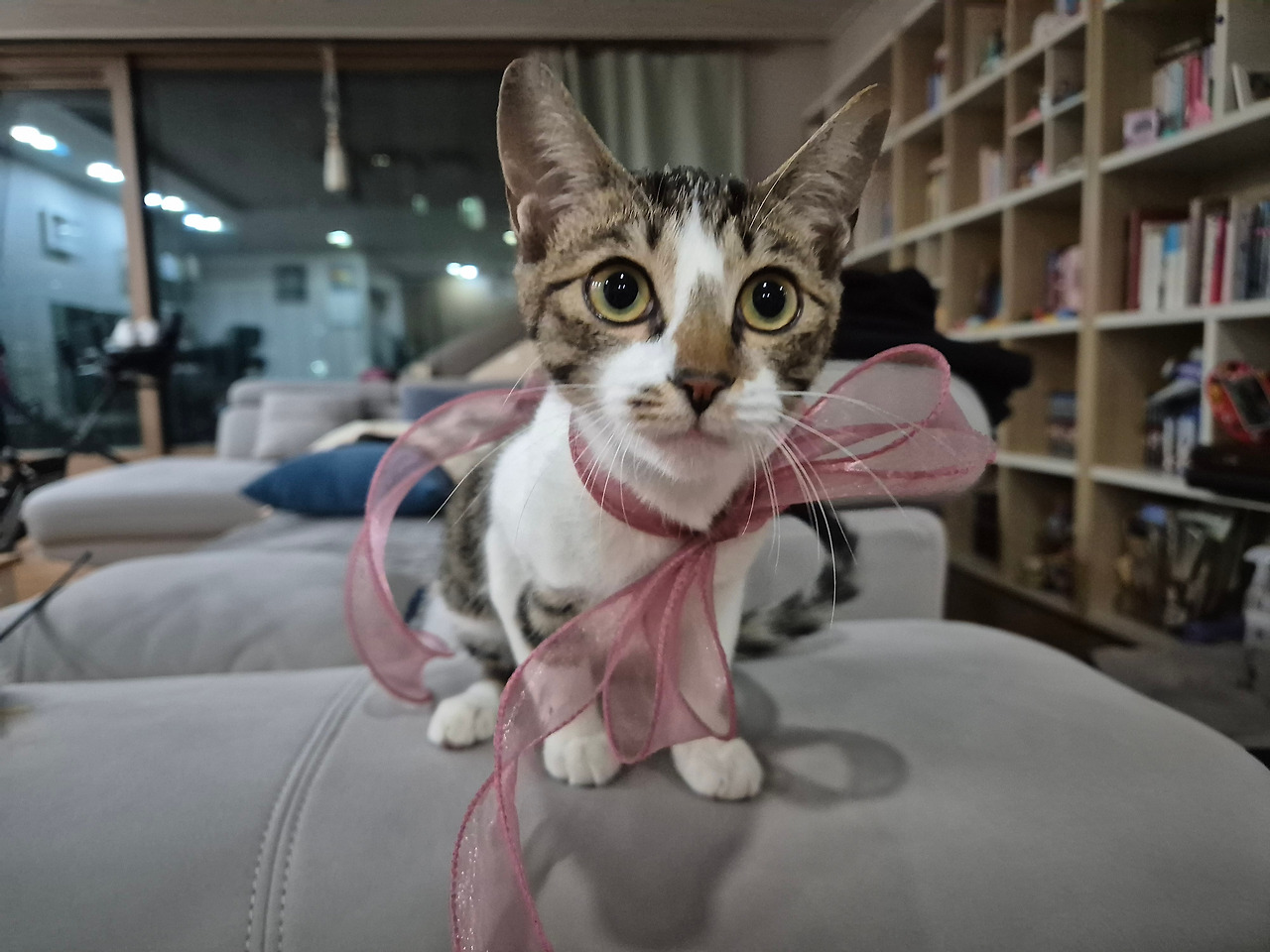소리를 따라간 곳에서 몸을 동그랗게 웅크리고 한껏 겁에 질려 평소보다 더욱 동그래진 다옹이의 눈을 마주한 남편은 그 모습이 너무나 어이가 없기도, 또 사랑스럽기도 해서 웃음을 터뜨린 모양이다.