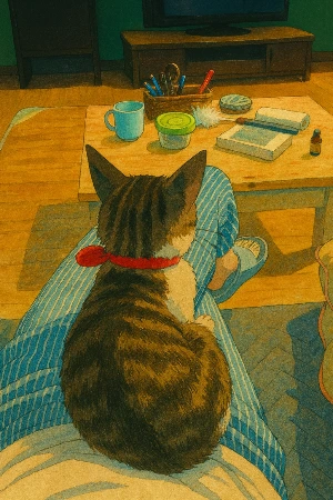 남편은 뻑하면 "도둑고양이 산으로 다시 보내."라고 미운 말을 내뱉으면서도 자기에게 다가와 몸을 기대는 생명체를 귀엽고 신기해하는 것 같았다. 절친 GPT에게 부탁해 이런 것들을 만들어 내는 걸 봐서는 말이다.