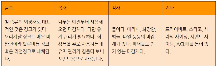 외벽 마감재 공부를 했다. 셀프 리모델링은 노동이 힘든 것보다 새로운 정보 찾는 것이 더 힘들고 귀찮다.